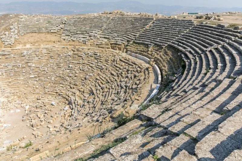 On the city’s southern side stood Anatolia’s largest known stadium, while to the north, two theaters -one facing east and the other west- reflected the city’s cultural vitality. Peristyle houses were flanked by shops, blending residential and commercial life into a vibrant urban fabric.