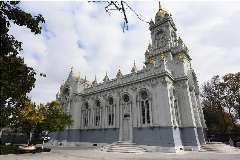 The church’s entire exterior; including stairs, bell tower, and window frames; is made of iron, requiring 500 tons of iron in total. Its parts were initially assembled in the garden of the Rudolf von Wagner company in Vienna, then dismantled and transported by ships via the Danube and the Bosphorus to Istanbul, where they were reassembled on the Golden Horn shore. The church was consecrated in 1898 by Exarch Joseph and opened for worship. Sveti Stefan Church is the only surviving iron church in the world, as others of its kind have disappeared over time. The church features a 40-meter-high bell tower above its entrance and three domes with six bells cast in Yaroslavl, Russia. With a capacity of 300 people and a history spanning 124 years, it is also one of the world’s first prefabricated buildings.