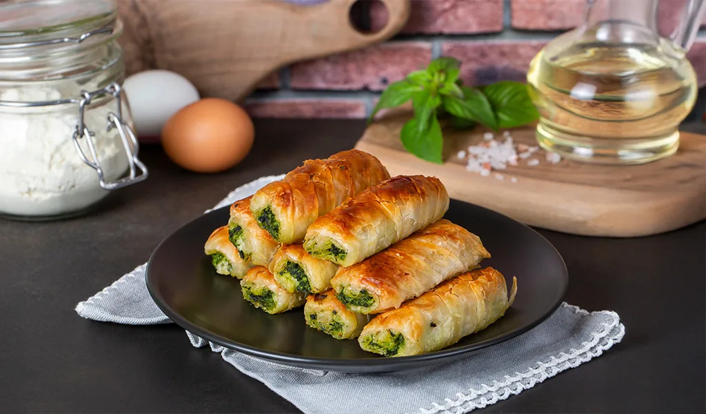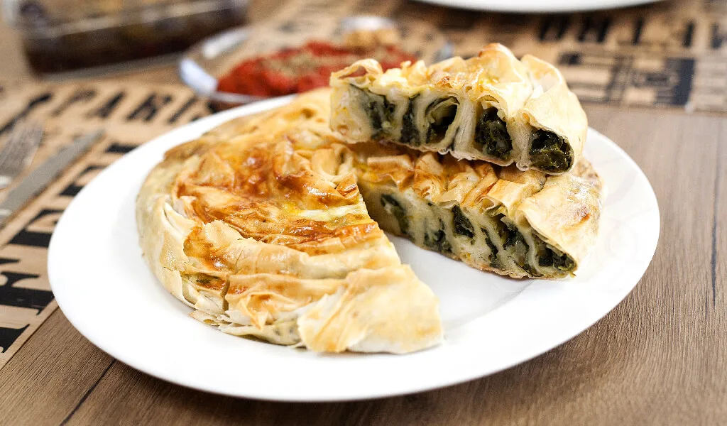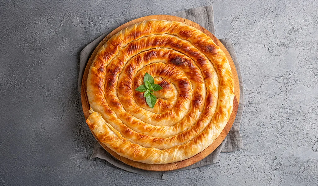 Börek has taken on new forms and names in other countries, especially in Greece, the Balkans, and Crimea, by blending with local culinary traditions. In Bosnia, burek is rolled into spirals and filled with meat, curd cheese, spinach, or potatoes. The Cretan boureki is made with zucchini and white cheese. In Tatar cuisine, “çi börek” is a deep-fried turnover filled with lamb, onions, and spices, similar to a famous street food gözleme. The Ottoman Empire’s influence even extended it to North African countries like Tunisia and Algeria, where regional varieties emerged.