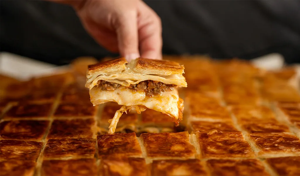 Among all these regional styles, minced meat börek holds a special place in Turkish cuisine. With a filling made from ground meat, onions, and spices nestled between thin layers of yufka, this type appears as tepsi böreği (tray-baked) or kol böreği (rolled). While every household may have its own recipe, börek always brings a shared warmth and flavor to the table.