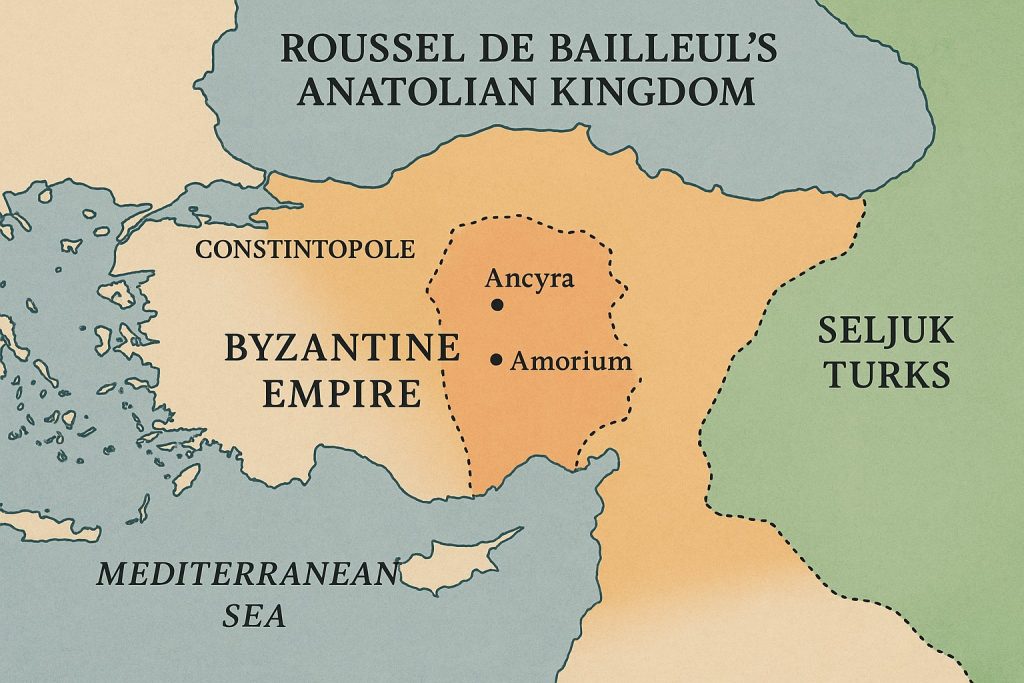In 1073, after tensions with the Byzantine general Isaac Komnenos, Roussel defected with 400 loyal Norman soldiers. When Isaac’s army was destroyed by Seljuk forces, Roussel seized the opportunity. He defeated a Seljuk detachment, captured Ancyra (modern-day Ankara), and declared himself Prince, establishing a de facto Norman principality in Galatia; in such a Norman Kingdom was established in Anatolia.