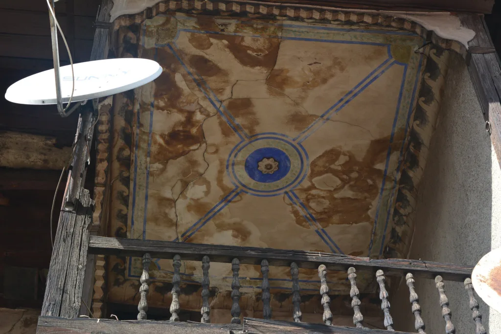 The Seyregâh (balcony) and ceiling decoration of the Nazım Çerkeş House in Ankara. If the Seyregâh faces the courtyard or garden, rather than the street, it can be considered similar to the architectural element known as “hayat.”
